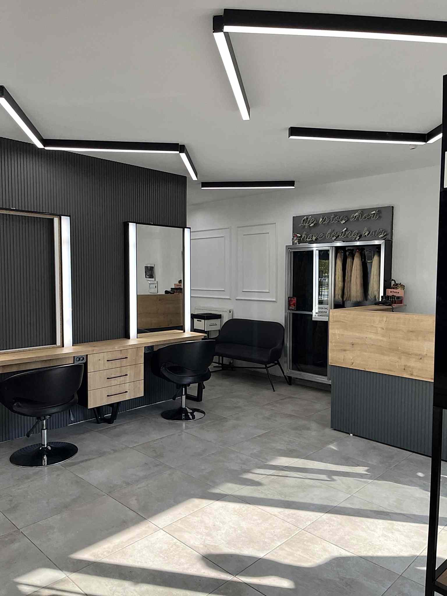 Projemiz, modern tasarım anlayışı, işlevsel çözümler ve kaliteli işçilikle kuaför salonunu nasıl bir sanat eserine dönüştürdüğünü ortaya koyuyor. Ali Çelik’in projemiz hakkındaki memnuniyet dolu yorumları, müşteri odaklı yaklaşımımızın en büyük kanıtıdır.