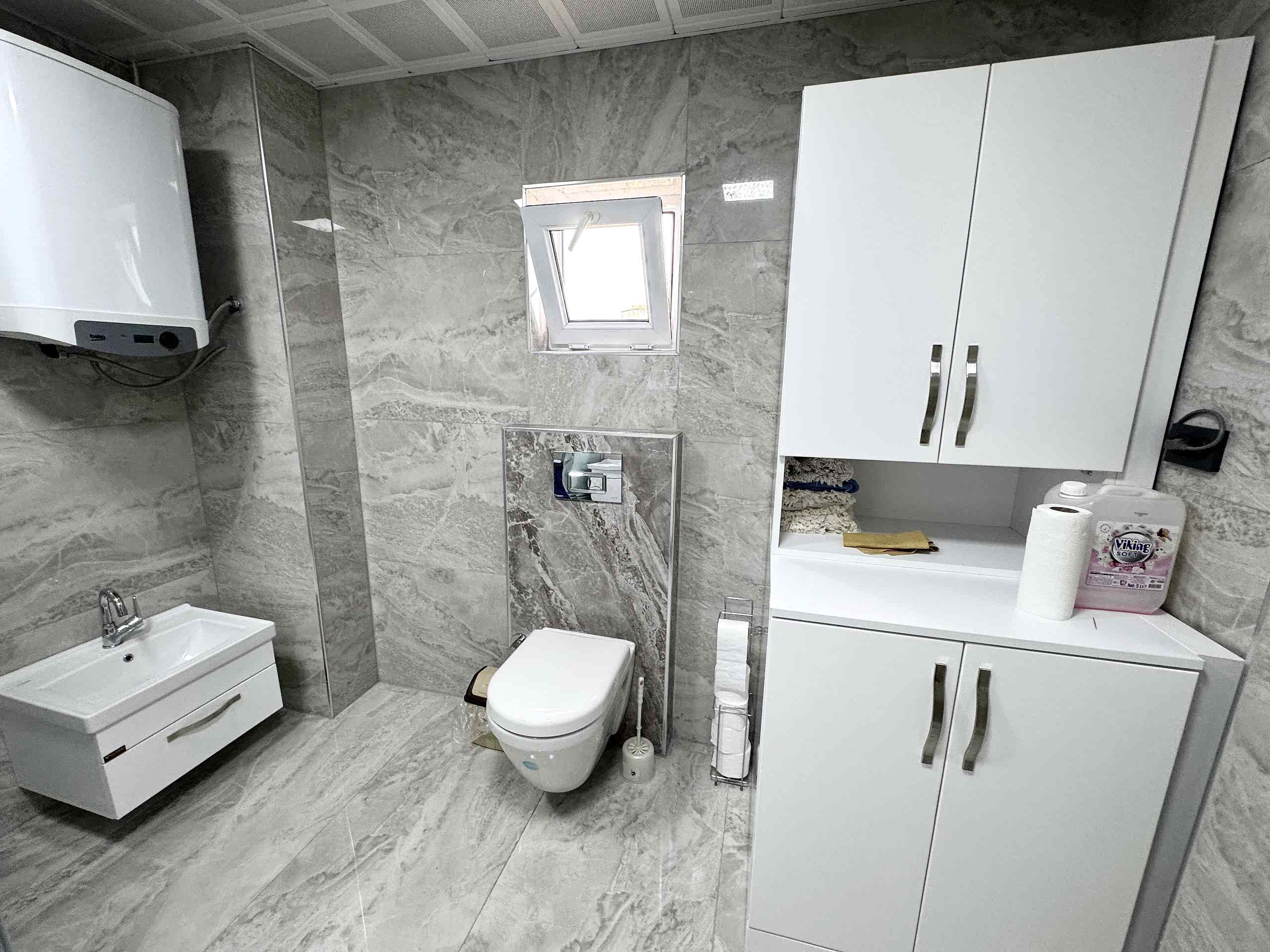 Projemizde, dayanıklılığı ve kaliteyi ön planda tutarak birinci sınıf malzemeler kullandık. Seçilen mobilyalar, seramikler ve vitrifiye grupları, yıllarca sorunsuz bir kullanım sunacak şekilde tasarlandı. Her detay, hem işlevselliği hem de şıklığı bir araya getirmek için özenle seçildi.