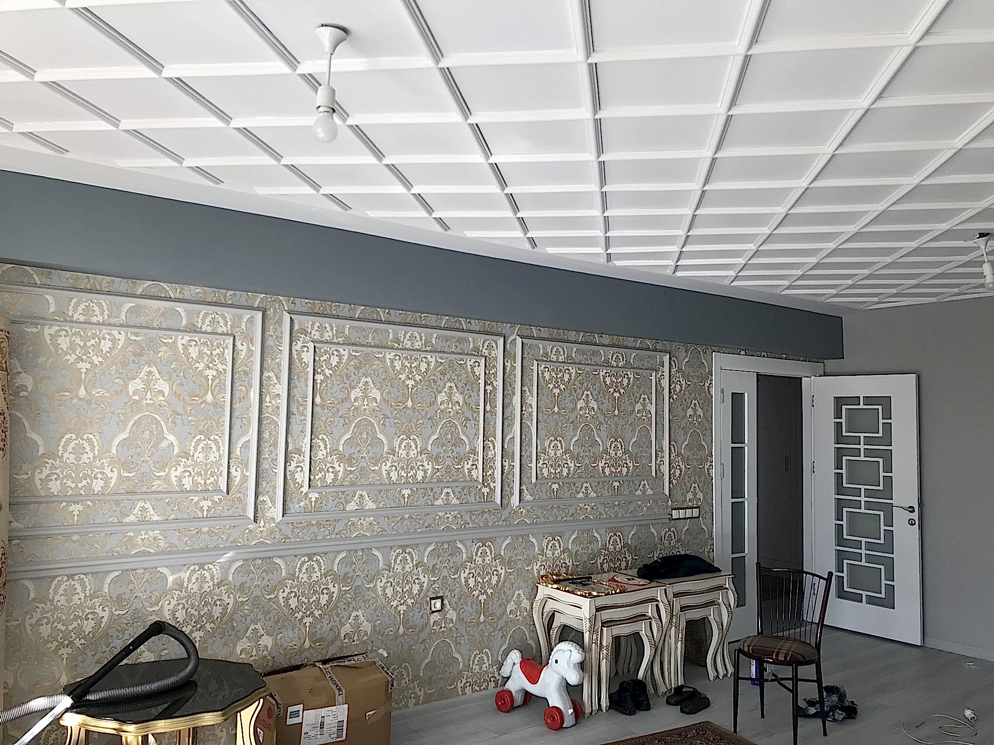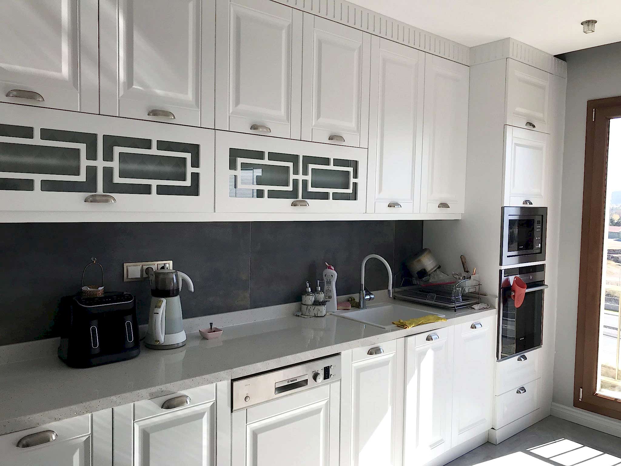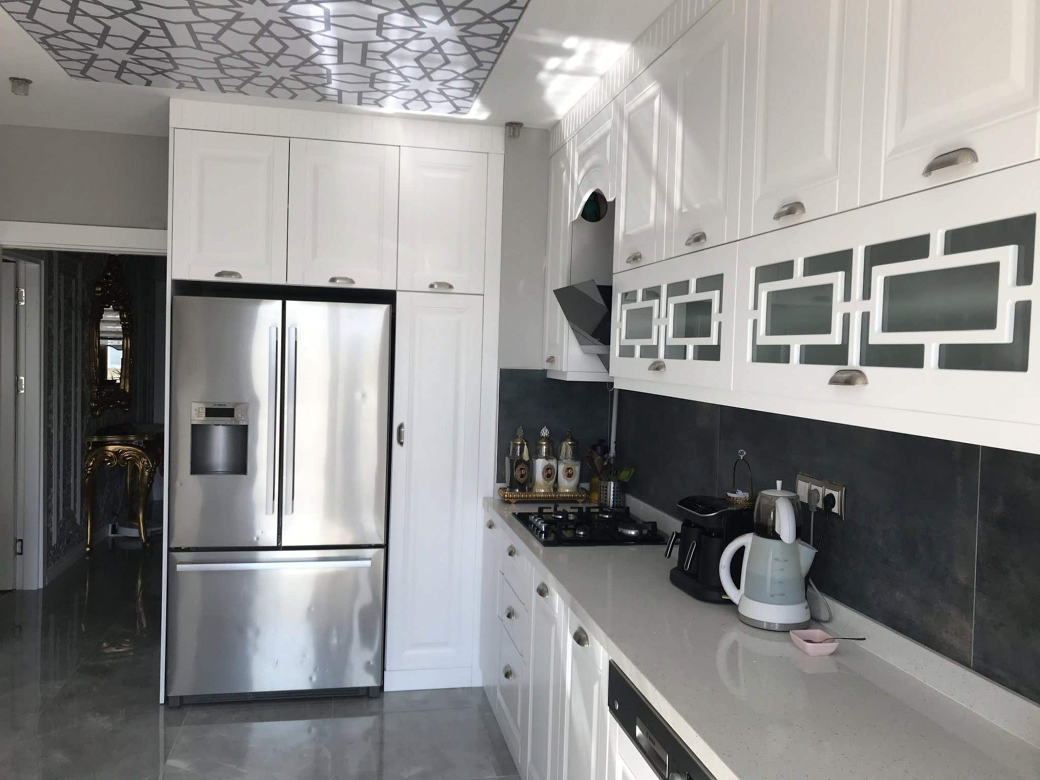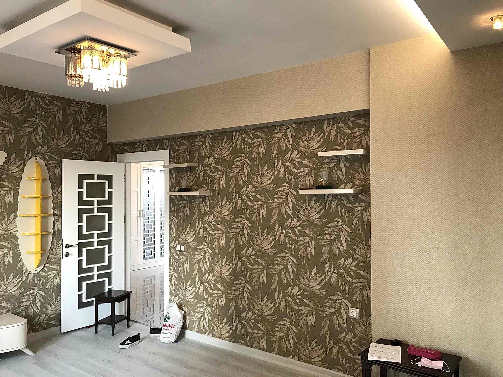 Eymen park ev tadilat projemizde seramikler,parkeler, banyo, wc klozet,duşakabin, bataryalar, banyo dolabı gibi uygulamalar yapılmıştır. Aynı zamanda Lake Mutfak Dolabı, Lake iç oda kapısı ve Lake boyalı vestiyer uygulamaları yapılmıştır. Eymen park projemizde salon ve antrede duvar çıtaları ve duvar çıtasının iç kısımlarına duvar kağıdı uygulaması gerçekleştrilmiştir. Salonda baklava dilim ayna ile mekana genişlik kazandırılmış ve yine salonun tavan kısmına baklava dilim poliüretan çıta uygulaması gerçekleştrilmiştir. Çocuk odası, evebeyn yatak odası ve oturma odasında ise duvar kağıdı uygulamaları hayata geçirilmiştir.