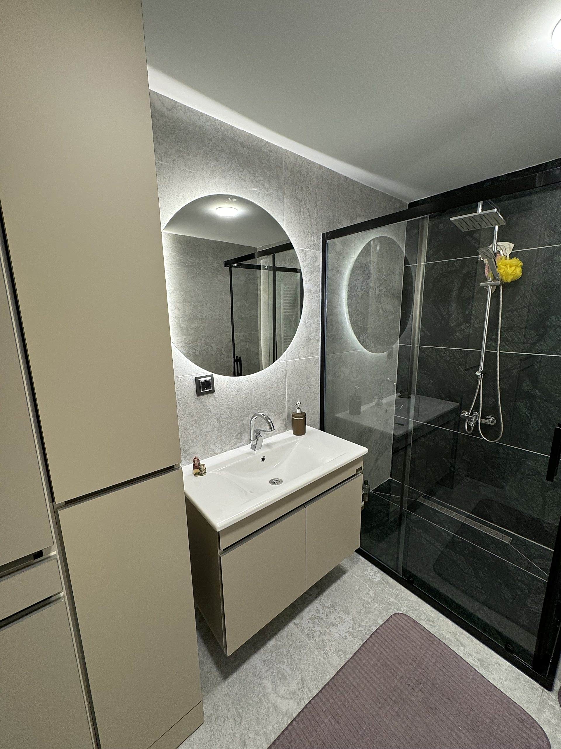 Banyoda, kaliteli seramikler, şık bataryalar ve modern vitrifiyelerle estetik bir görünüm sağlandı. Malzeme seçiminde hem uzun yıllar kullanılabilirlik hem de modern tasarım anlayışı esas alındı. Bu detaylar, müşterimizin konforunu artırırken banyoyu görsel açıdan da zenginleştirdi.