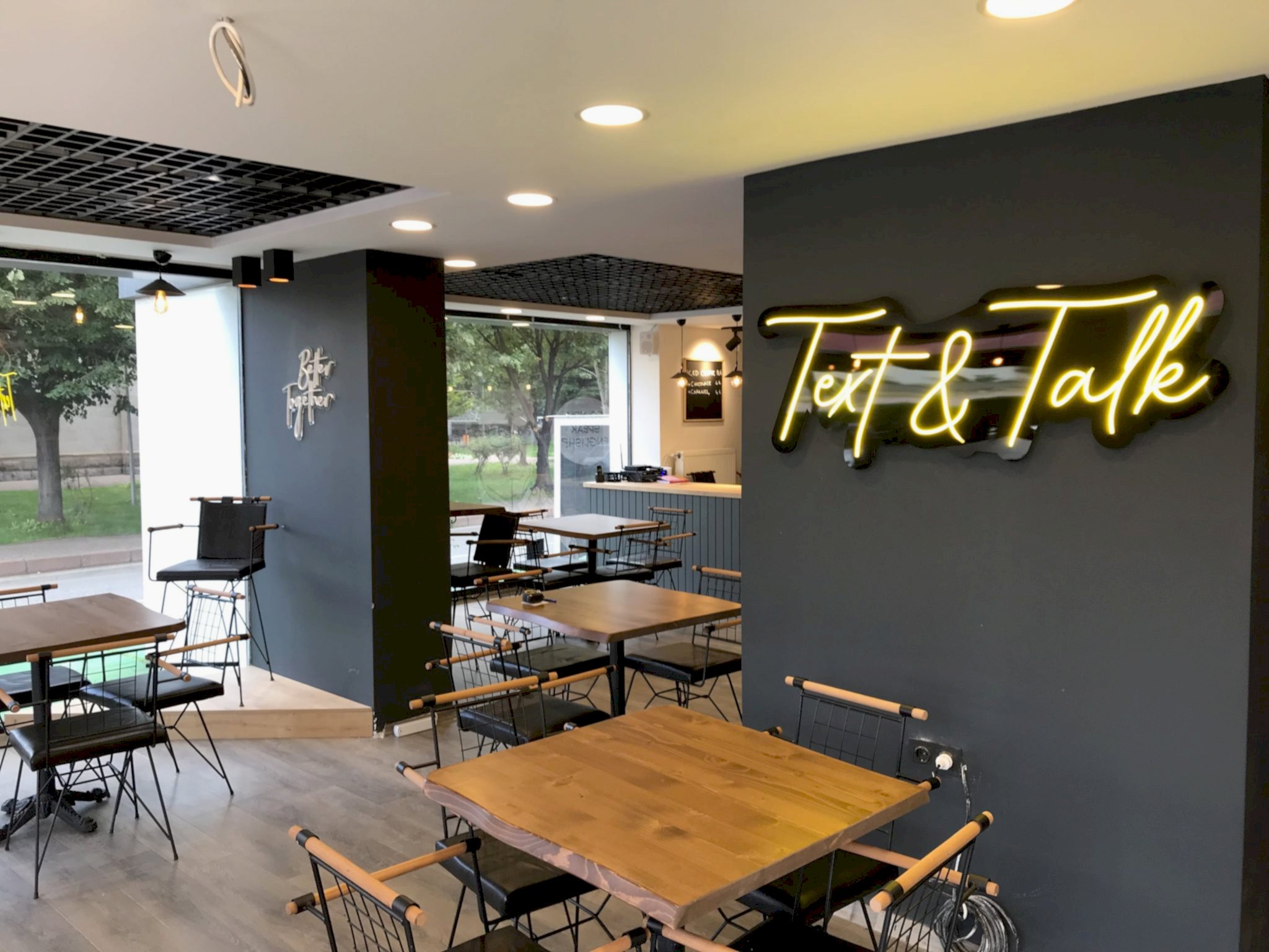 2022 yılında, Kayseri’nin Köşk Mahallesi’nde yer alan Text and Talk Dil Okulu’nun içinde bulunan cafe, Venka Yapı tarafından 25 gün gibi kısa bir sürede yeniden tasarlanıp uygulanmıştır. Bu özgün ve modern cafe, ziyaretçilere keyifli bir deneyim sunmak için her detayın dikkatle düşünüldüğü bir mekan haline getirilmiştir.